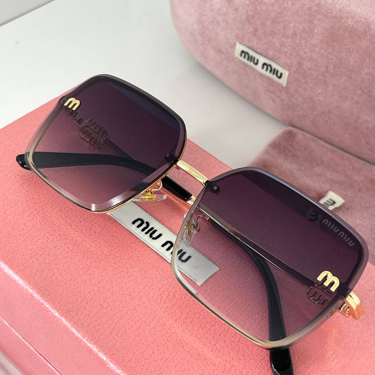 Boîte rigide Miu Miu en velours rose, élégante et douce au toucher
